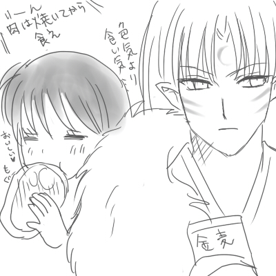 久しぶりのお絵かき。。暑いので、殺生丸さまにうちわ持っていただいてます。